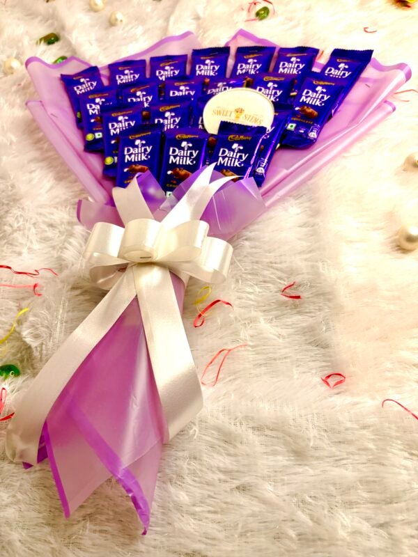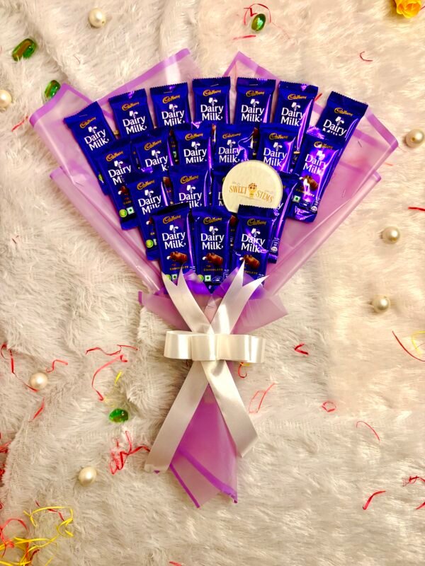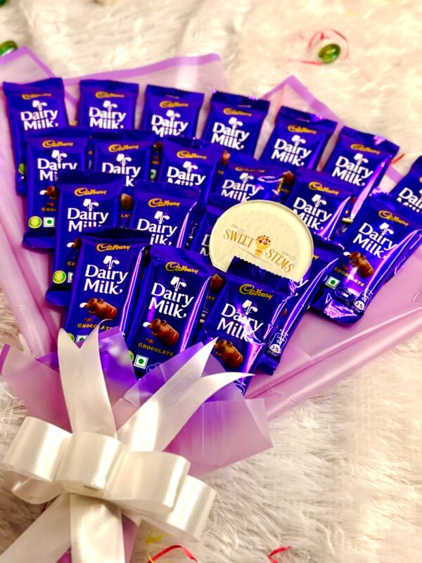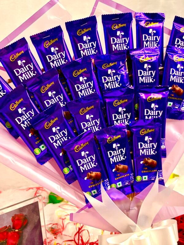 • Bouquet includes : Dairy milk -20 (13.9 gm) Standee Size: 5×4 inch