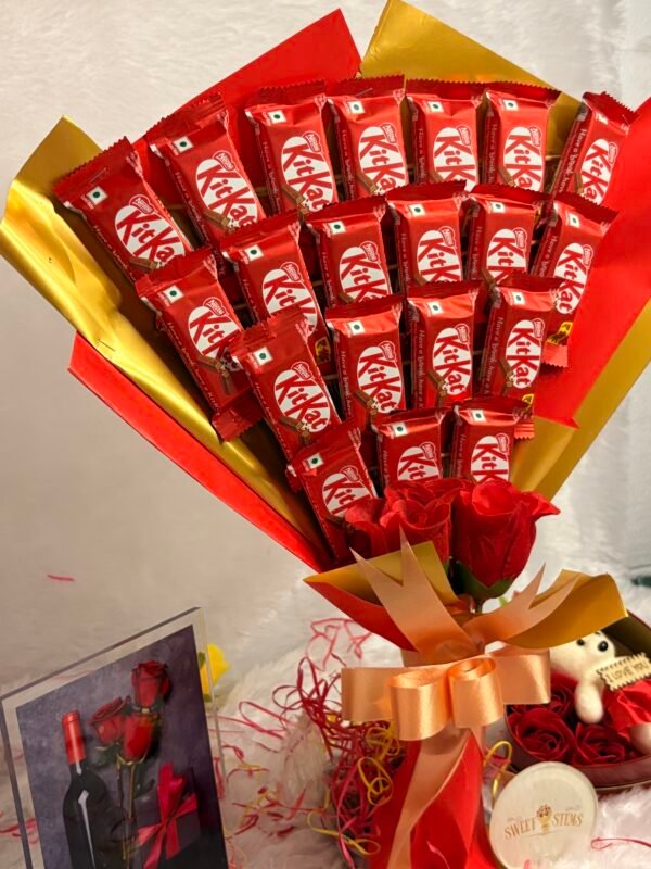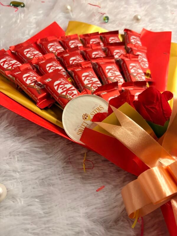 - Bouquet includes : Kitkat-20 (12.8 gm) Standee Size: 5×4 inch